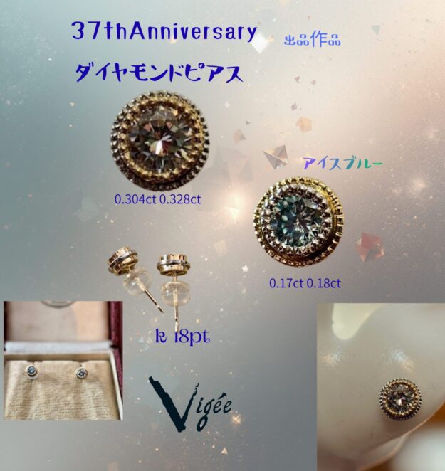 ダイヤモンドピアス出来上がりました。写真の内アイスブルーの紹介は明日アップ予定。