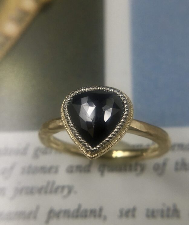 ブラックダイヤをお預かりして、セット使用で制作しました。k18 pt ミル技法