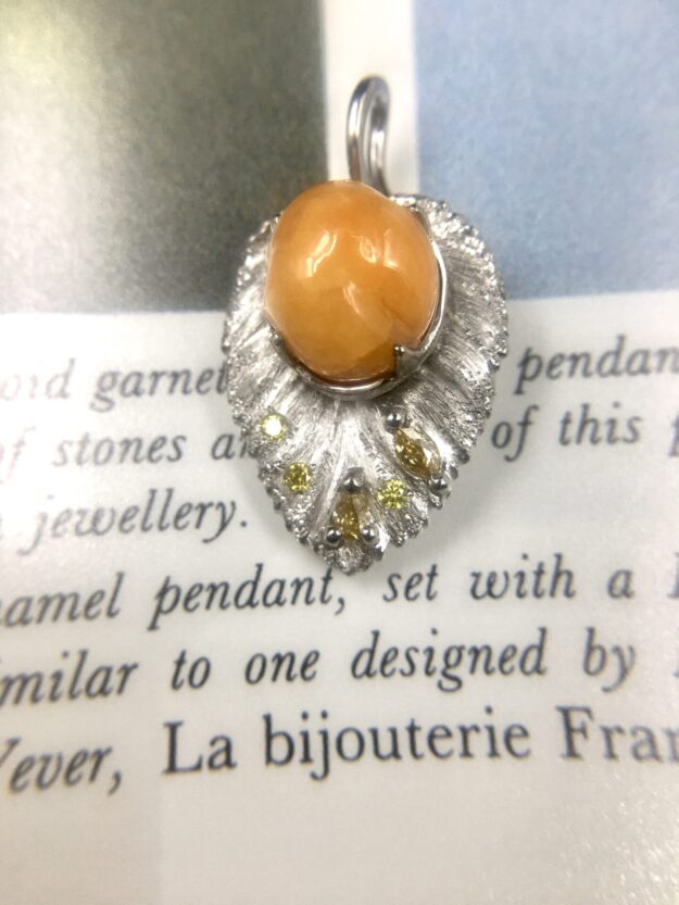 コンクパールをお預かりして葉のペンダントを制作。pt部分にグレースタガネ、シンプルなデザインです