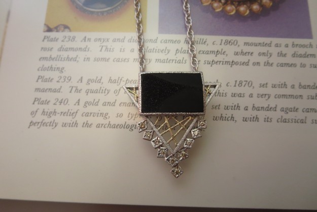 acoの新作。格子のペンダント。格子部分をk10でメレーダイヤで光の輝きを表現、チェーン付きで長めの使用がいいと思います。