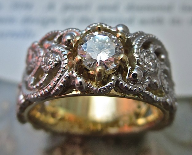 神戸国際宝飾展で受注した、ダイヤのオーダーリング。アートラインはヴィジェの定番アイテム。アートラインはツルをモチーフに永遠の生命を表現しています。制作mina