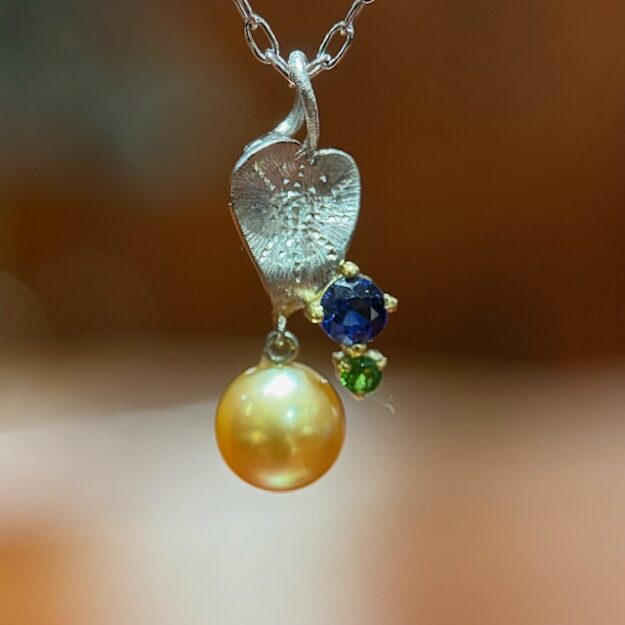 粒子の揃ったものが長い年月かかって僅かに赤味が出ます、ペンダントカンも大きくとっています。胸元で揺れる様ななんと美しいのでしょう。