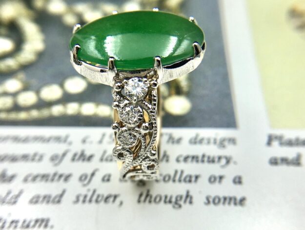 WG k18 ダイヤリング 母から子へ いつもオーダーいただくコレクターから、お母様が使っていたダイヤリングのリフォームオーダーを いただきました。昨日ご来店いただき、ご本人の指に! 地金デザイン全てご本人…