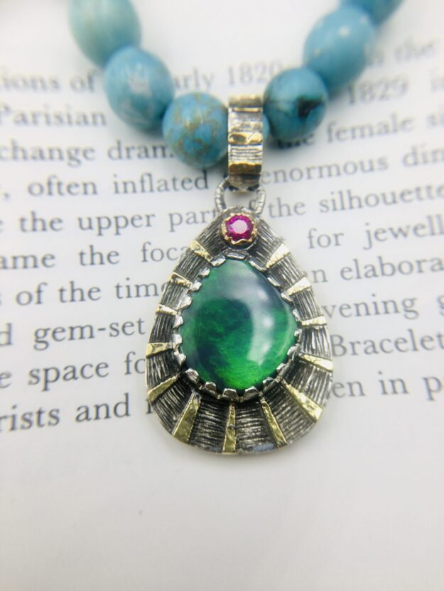 長めでお使い頂くこともok.ペンダントカンをデザイン的に大きく製作しています。keikoのアートバロックから。