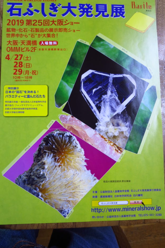4月212019 石ふしぎ大発見展 2019第25回大阪ショー(石ふしぎ大発見展)出展します。可愛いネコのカメオ、指に優しいリング、新作を展示します。keiko,minaが会場でご案内します。 第一会場 テーブルno.1 西荻店は通常営業 続きを読む