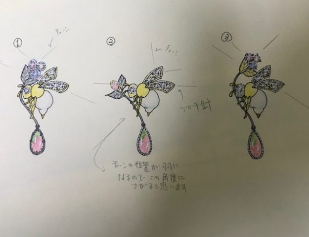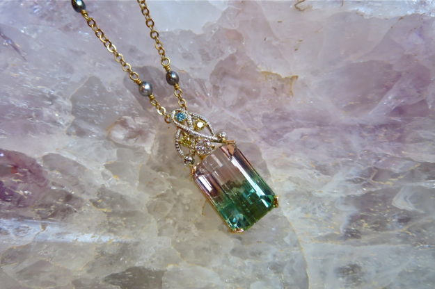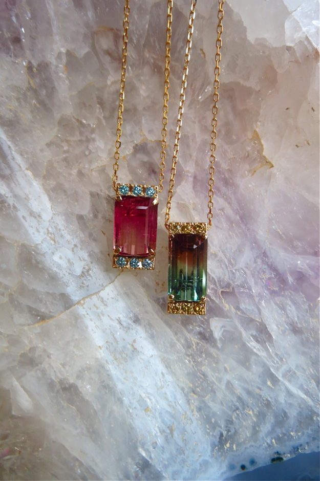 オーダー会 バイカラートルマリン ドリスペンダント。ギリシャ古代建築様式をモチーフにして。現品販売とオーダー可能デザインでルースもご用意しています。