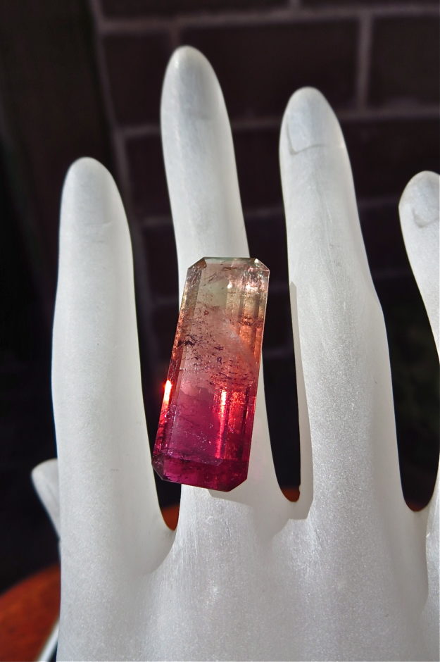 自然環境で変化していったレッッドバイカラー。宇宙の営みを自然に取り入れて、シンプルにジュエリーにするのはいかが。24.3ctは写真の指がリアルに表現します。