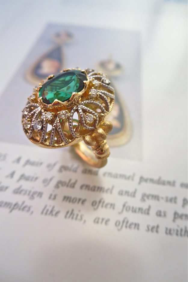 オーダーはヴィジェのオリジナルスタイルを基本にしてディティールをお客様の自由に表現する様ににしたジュエリー制作ですが今回はルースもお持ち込みでデザイン画から制作迄お客様のお好みで仕上げました。