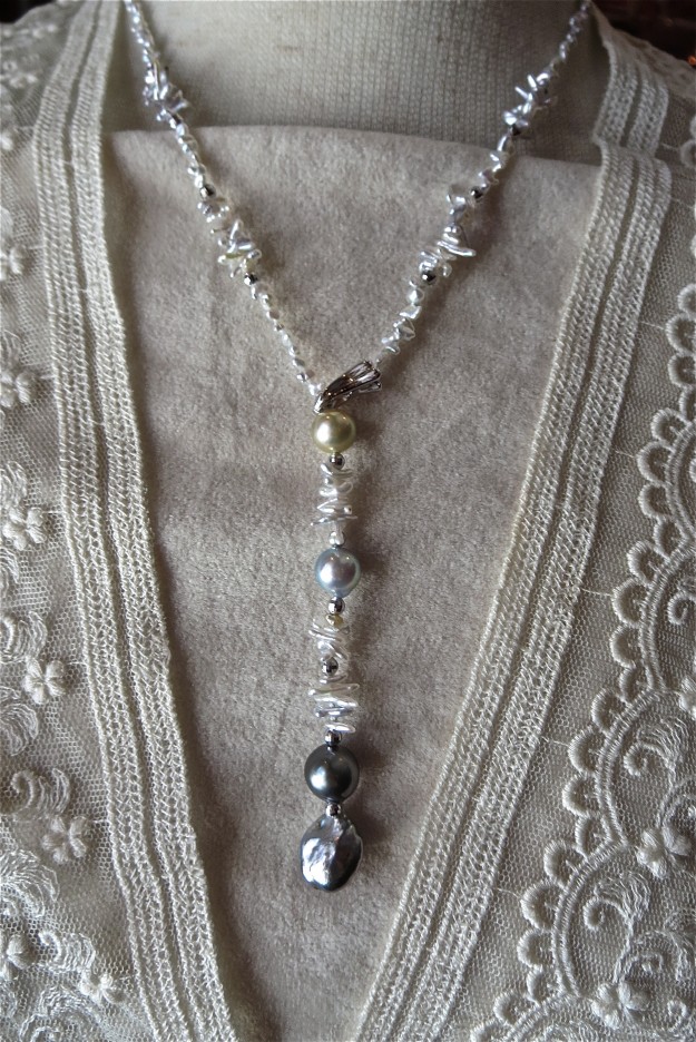 続きを読むYチェーンネックレス。決算セールに合わせて制作。デザイン制作mina。ネックにアコヤケシパールでY下げる部分に黒真珠と黒ケシ球を使用。¥60,000をセール特価¥42,000 1本限定