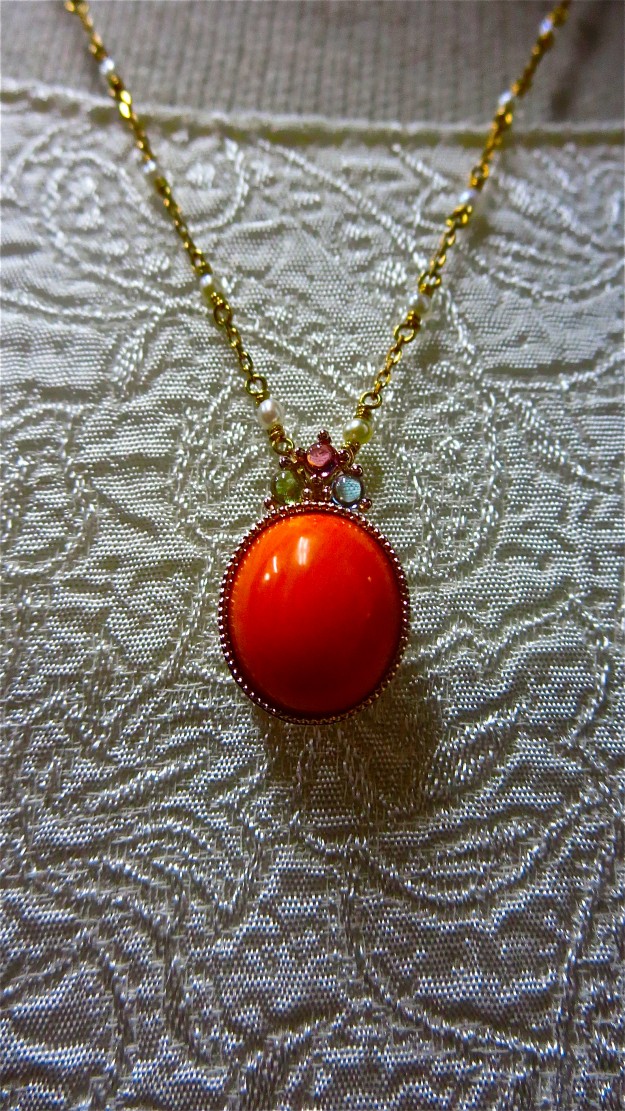 続きを読むminaのリフォーム。サンゴを題材にペンダントにリフォーム。ペンダントカンにピンクトルマリン、ペリドット、ブルートパーズ、2m/mのカボッtションカット。カット石に比べて優しい感じに仕上がります。