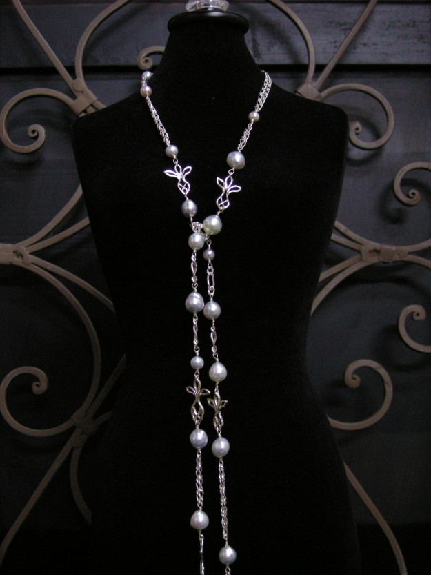 keikoのラリエットネックレス。シルバー、生珠8m/m~9m/m使用、調色をしていない、海と貝の息吹をそのままに美しいパールです。