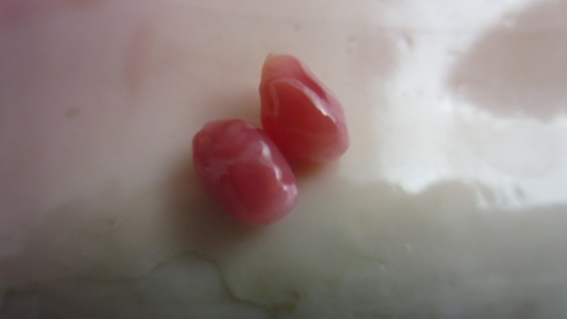 ペンダント。片面はケシパールの彫留めでもう片方は手彫りで彫り込んで胸につけて、弾みます。