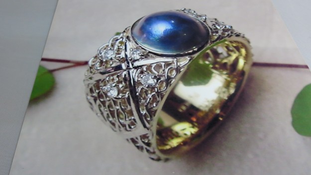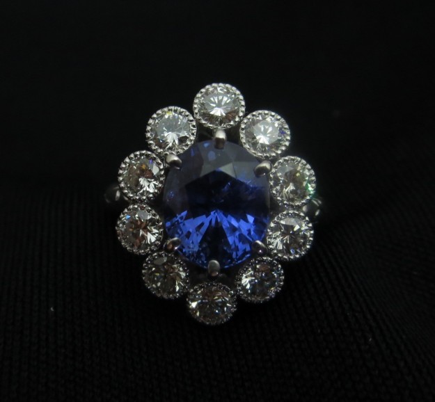 奇麗なサファイヤを宝石商からお預かりしてのオーダージュエリー。デザインkeiko 制作aco