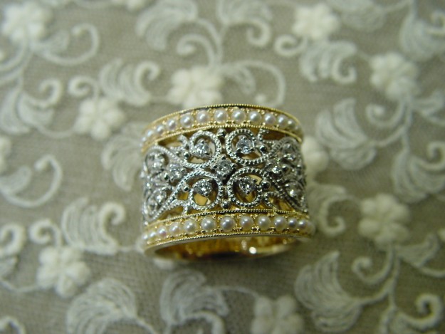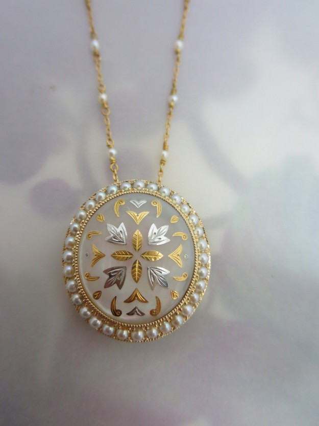現在に伝えるアンティック技法のピクエのリングをペンダントにリフォーム。裏の美しさもヴィジェの制作コンセプト。奈良工房より^いっきに春 咲い、たさいた。