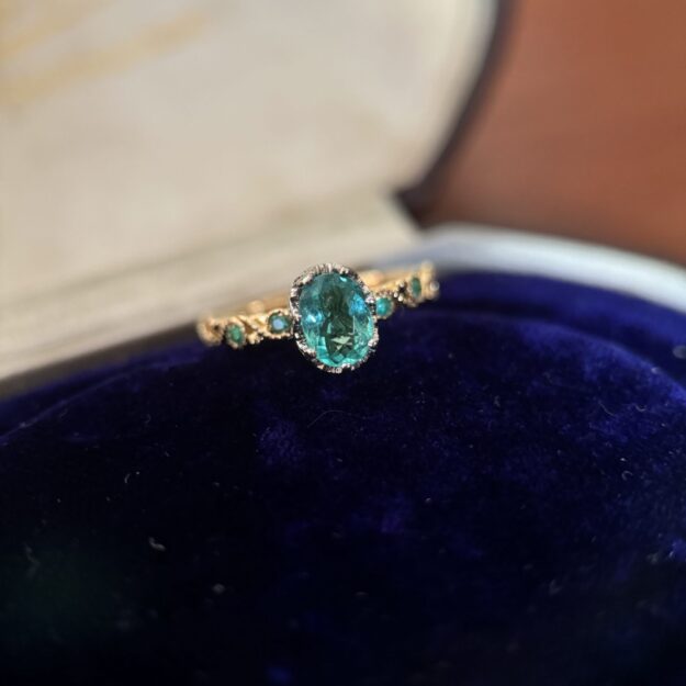 少しメレーダイヤを足すだけでも見違えるほどイメージアップになります。まずはご相談を!カラーストーンのメレーは小さいので色が大事。