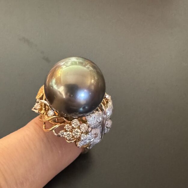 両サイドにパライバメレーを4ピース彫り留で。止めて仕上げればいい感じ、しかし怖い、数ピーストラブル防止にメレーをお預かりして!全てはOK.
