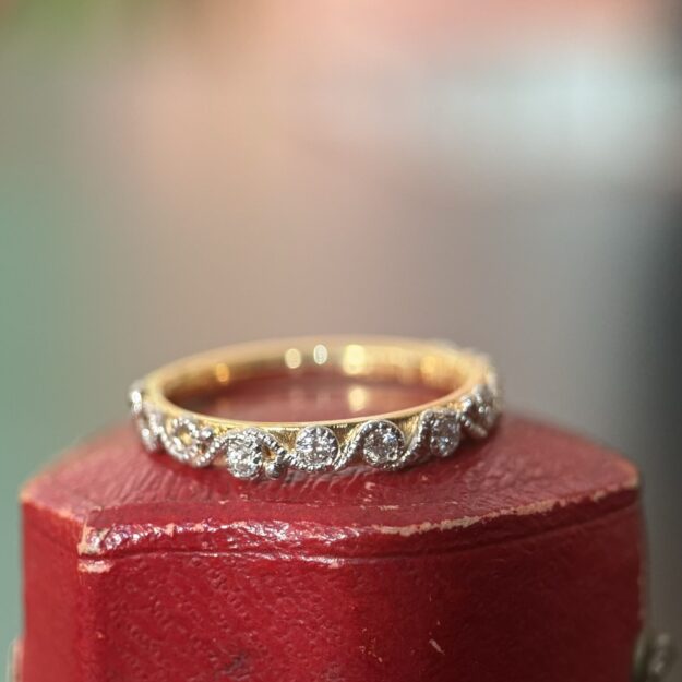 アートラインリング 2.5mm幅 メレーダイヤ0.1ct アーム下部も彫りで飾り付け。リバーシブルとしていかがですか。またセンター石を置いても良いです。