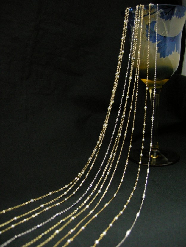 オリジナリティの高い手づくりチェーンネックレスです。アコヤ貝のケシ珠とチェーンをつないでいます。ペンダントを下げてもチェーンだけでお使いになっても、納得いただけるオリジナルジュエリーです。デザイン制作 kazusa