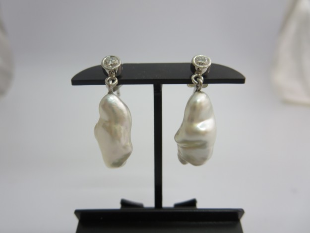 続きを読む南洋珠ケシパールのバタフライタイプのピアスです。ケシ珠としては大きなサイズのパールです。0..11キャラッとのダイヤ2ヶをあしらいシンプルで豪華なイメージで装うときにいかがでしょうか。