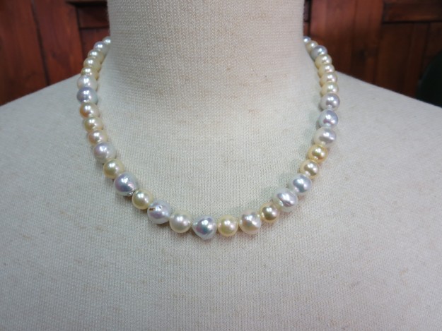 淡水パールの3m/mのベビーパールを使用したロングのネックレスです。形良く光沢もある珠を使用カジュアルに又2連使用でドレスアップにもオススメ。値段も現品のみにてお買い得。