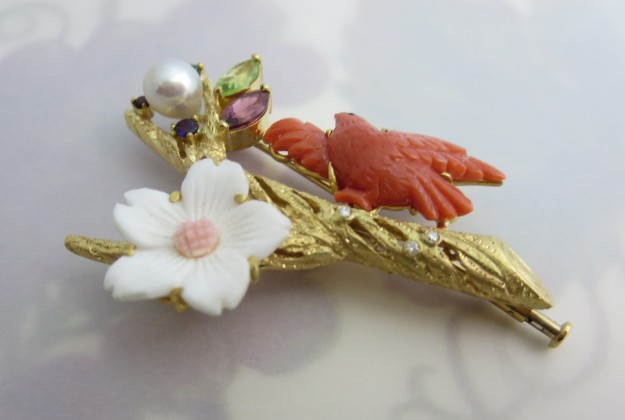 続きを読むタイトルー春の目覚めー ジュエリー作家minaのお得意の動物から鳥のブローチ兼用ペンダントの紹介です。minaはヴィジェの中で動物担当で犬、ネコ、カエル、楽しいジュエリーを制作しています。