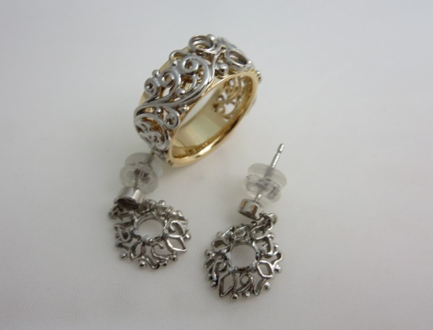 今回はお客様のお持ちになっていたイヤリングをピアスにリフォームし、同じテイストのアートラインリングのご注文をいただきました。