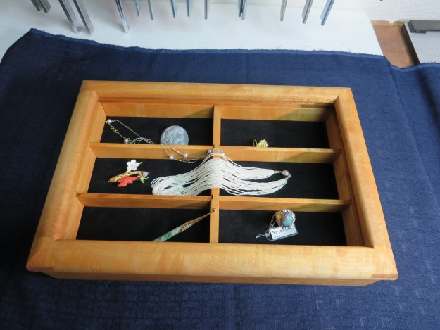 無垢材で楓で作ったジュエリーケース。ケース内はお好みで仕切りを作れます。アクリルの入ったふた付き。